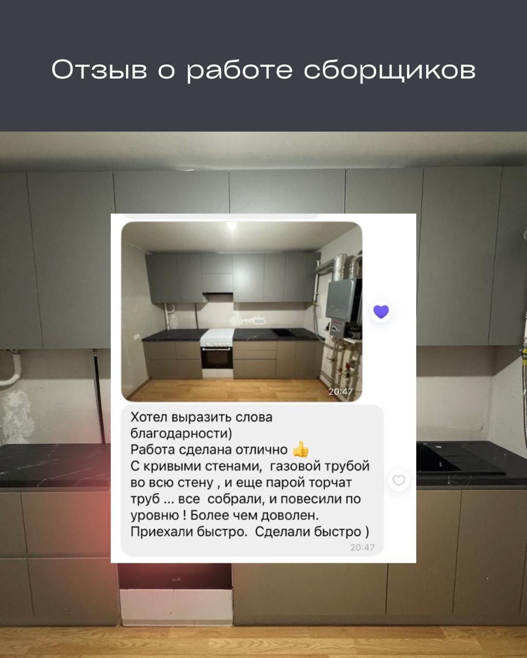 Мы сознательно отказались от всего, что не влияет на качество и срок службы кухни. Мы не платим за аренду огромных шоурумов и не закладываем в цену услуги «именных» дизайнеров. Вы платите только за материалы и работу — те же самые, что используются в кухнях под заказ, но без наценки за бренд или громкое имя.