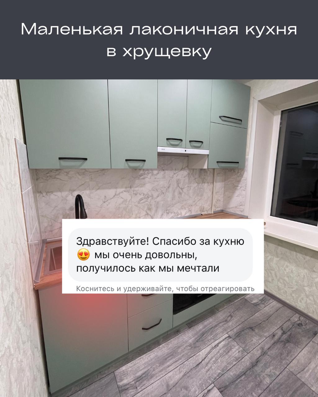 Те же фасады и фурнитура, что и в «авторских» кухнях, но без 30% наценки за дизайн.